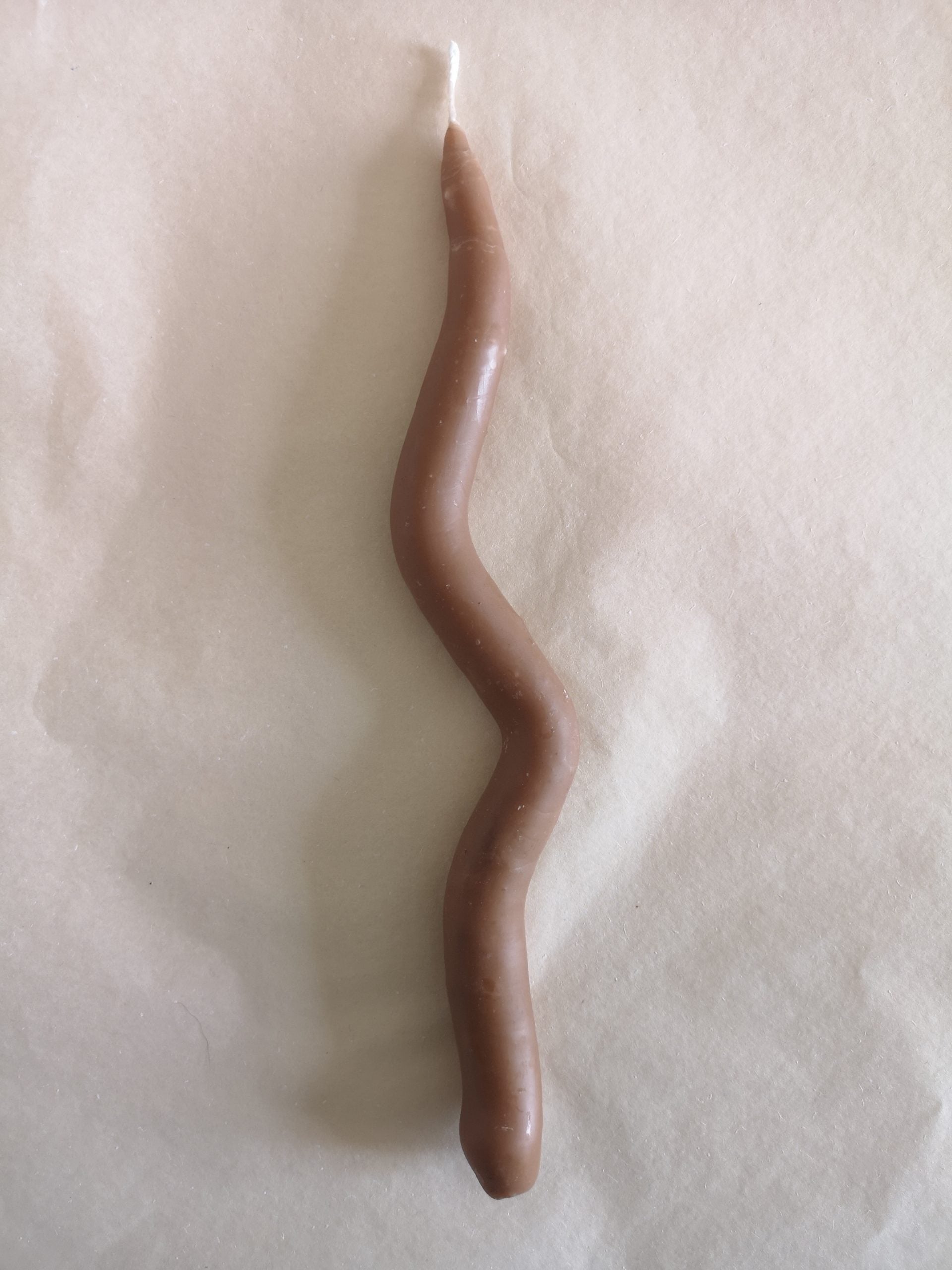 Bivaxljus Vågigt Jord. Lokalt gult bivax pigmenterat med kakao Cacao Theobroma.