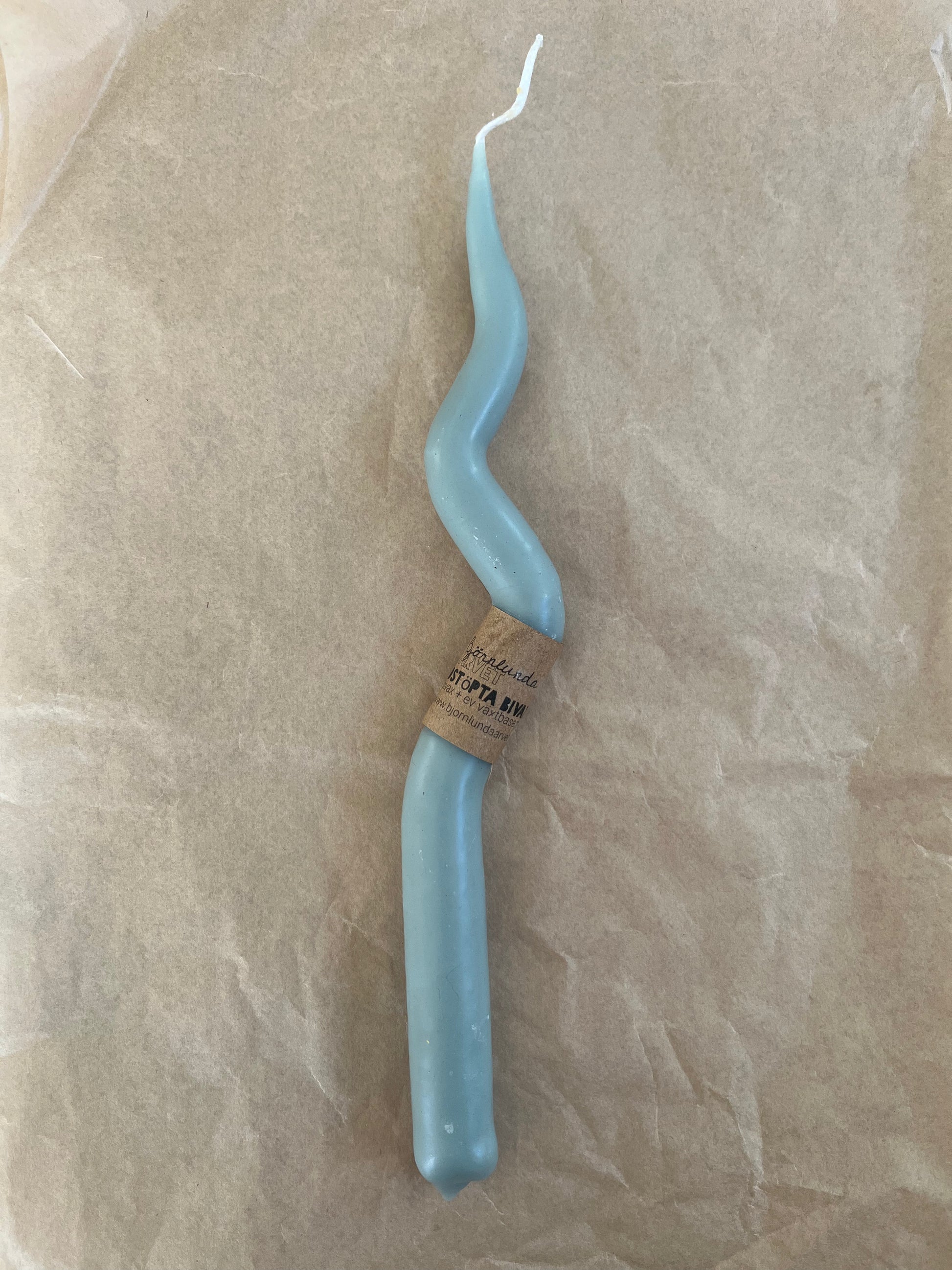 Bivaxljus Vågigt Indigo. Vitt bivax pigmenterat med kakao Indigofera tinctoria.