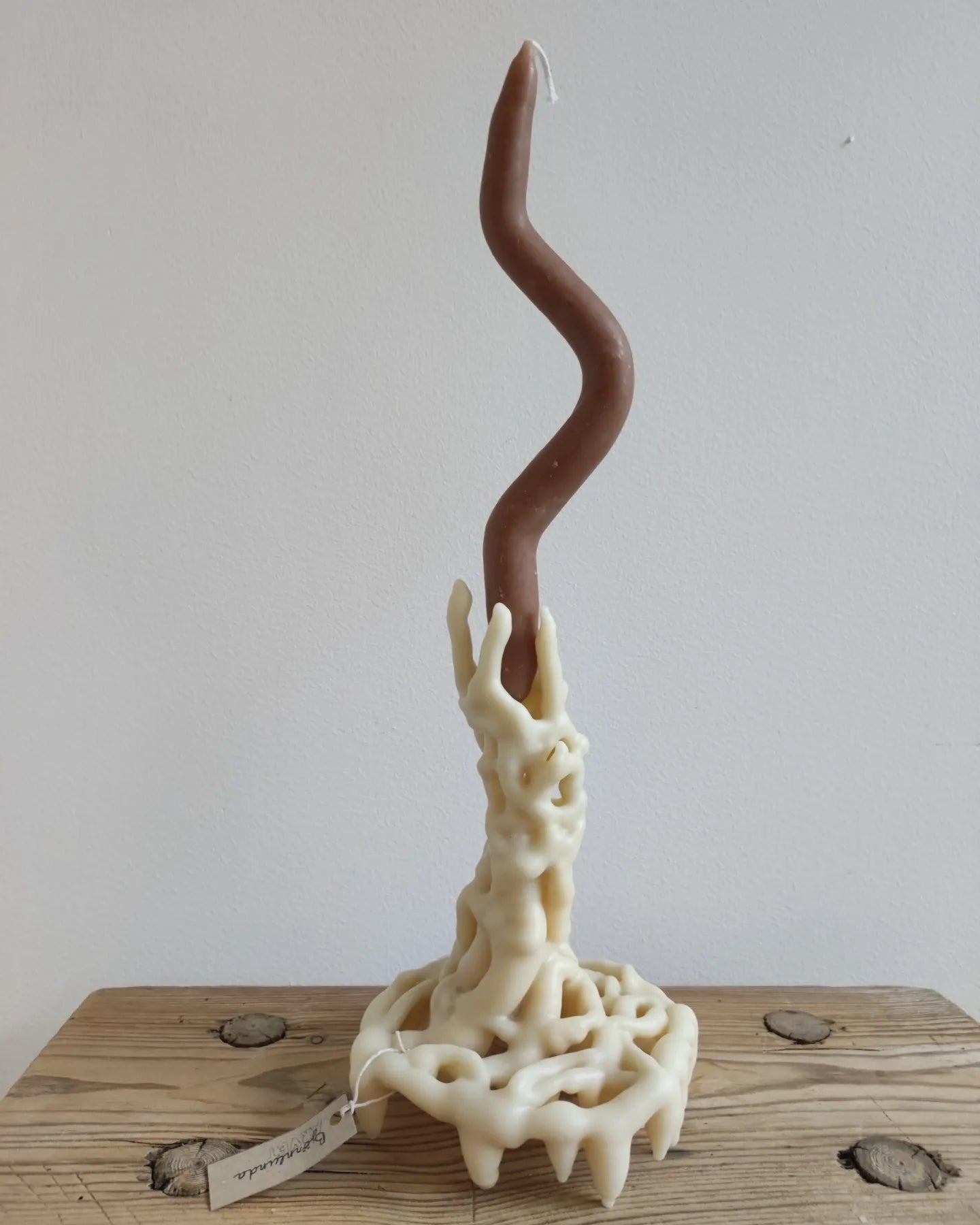 Ljusstake av vitt bivax och ståltråd.