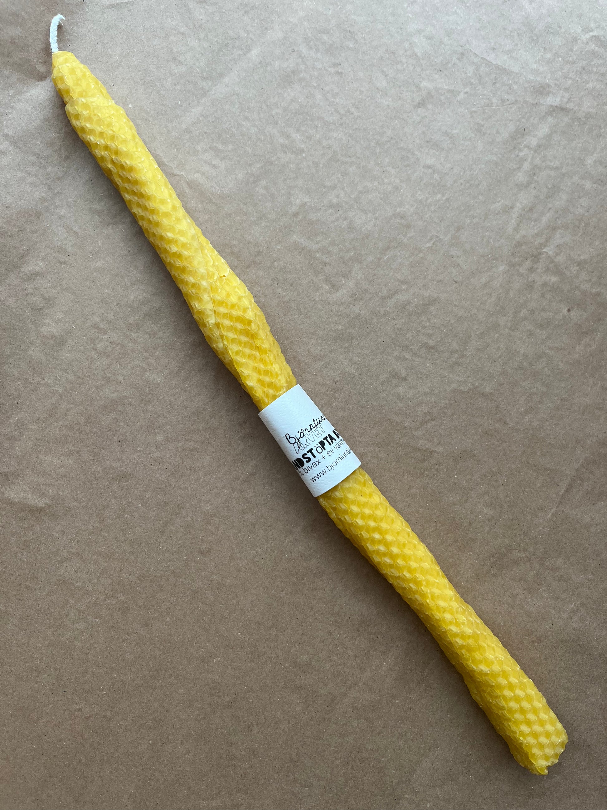 Extra långt bivaxljus som är handrullat och format av sk mellanväggar, de som bina fäster honungen på.