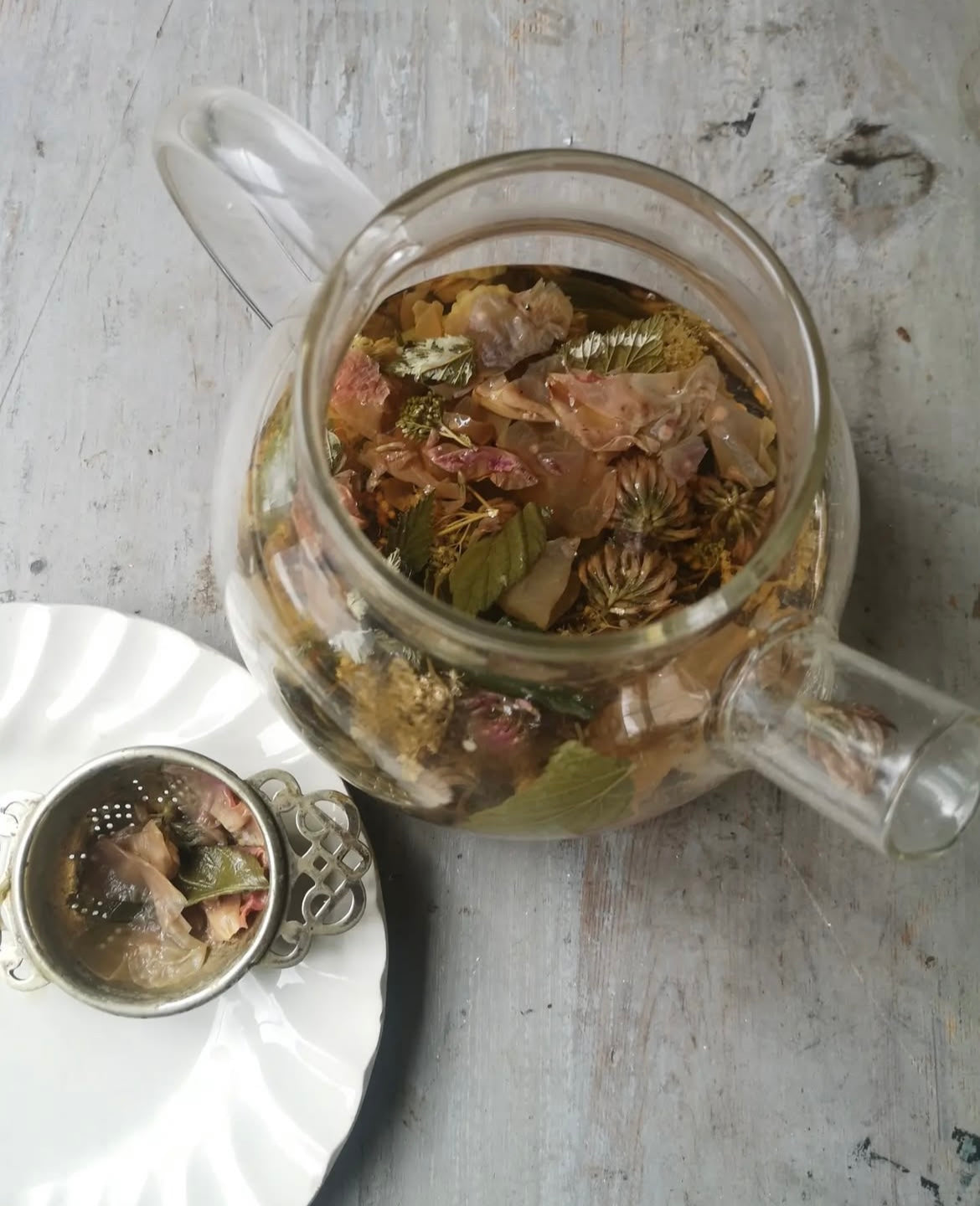 Dricker ett passande örtte med något gott nyskördat till.